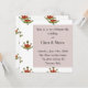 Une élégante invitation de mariage botanique présentant un motif floral délicat dans des tons neutres chauds avec des accents rouges et verts doux inspirés de la nature.