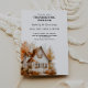 Notre dîner d'automne Thanksgiving invitation double face carte plate dispose de belle calligraphie et une aquarelle maison d'automne design. Customisez-le à votre goût et faites de cette saison des fêtes une saison à retenir !