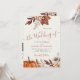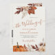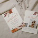 Fleurs botaniques rustiques modernes, citrouille, feuillage et feuilles séchés faisant un budget d'automne chic abordable tout en un faire-part de mariage blanc avec un script de calligraphie à la mode écriture manuscrite et la palette de couleur beige terre cuite. +++++++++++++++++++++++++ Personnalisez-le avec votre photo et votre code QR sur votre site Web ou à RSVP en ligne.
