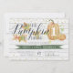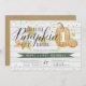 Tombez amoureux de ces invitations rustiques et élégantes à des soirées anniversaires de enfants dans une palette de couleurs d'automne orange, vert chasseur et marron. "Notre petit citrouille en tourne un" apparaît en haut dans le script de calligraphie chic en lettrant, avec l'âge de votre enfant inscrit sur un citrouille orange, sur un arrière - plan de shiplap en bois blanc rustique. Exemple présenté pour un premier anniversaire. Personnalisez avec les détails de votre fête d'anniversaire en dessous en lettres blanches.