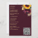 Automne été mariage de Bourgogne et tournesol jaune verdure bordeaux arrière - plan cadre or boho rustique modèle fleuri tout en un avec le code RSVP QR et les détails mariages à l'arrière.