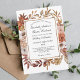 Une belle faire-part de mariage de couleur automne et automne. L'invitation est encadrée d'un bouquet coloré de fleurs dans les rougeurs, roses douces, blanc et marron. Tous les champs peuvent être modifiés.