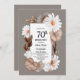 Célébrez votre 70e anniversaire et invitation vos amis et ceux qui vous sont chers à l'occasion de votre anniversaire avec cette invitation de fête florale de 70e anniversaire d'automne avec une frontière grise avec pétunias aux tons terreux et marguerites blanches.