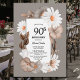 Célébrez votre 90e anniversaire et invitation vos amis et proches à votre fête d'anniversaire avec cette invitation florale de 90e anniversaire d'automne avec une frontière grise avec pétunias aux tonalités terre et marguerites blanches.