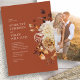 Cette faire-part de mariage élégante et rustique présente des feuilles d'aquarelle peints à la main, orange brûlé et terre cuite, des dahlias crème et beige, et de beaux roses de couleur rouille, parfaits pour un mariage automne ou automne ! Le dos de l'invitation a une photo pour la personnalisation. Trouvez les articles correspondants dans la collection Romance automne cuivre.
