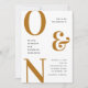 Monographies de typographie en gras faire-part de mariage + détails et QR Code sur le côté arrière dans les couleurs jaune et ocre moutarde. Convient pour le mariage automne / automne.