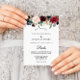 Cet automne, le faire-part de mariage espagnol bordeaux et rustique est parfait pour un mariage moderne. Le design est composé de fleurs bordeaux, rouges, navales, bleues et rousses rayonnantes et gracieuses peintes à la main, inspirant la beauté naturelle.