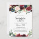 Cet automne rustique moderne calligraphie invitation de fête surprise est parfait pour un anniversaire floral, la retraite ou toute fête surprise. Le design est composé de fleurs bordeaux, rouges, navales, bleues et rousses rayonnantes et gracieuses peintes à la main, inspirant la beauté naturelle.