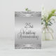 Cartes d'invitation élégantes pour les noces d'argent pour une réception / fête de 25 ans de mariage. Avant et arrière argent avec texte noir au dos donnant un look classe à cette invitation d'anniversaire unique.