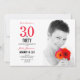 une invitation photographique amusante, moderne et à 30e anniversaire que vous pouvez personnaliser et envoyer pour votre trentième anniversaire fête. Les mots "30 and Dirty" sont utilisés en typographie populaire. Remplacez l'exemple de photo par le vôtre. Les couleurs de texte orange et noir peuvent être modifiées à l'aide du menu d'édition. Un motif en tissu noir et blanc orne l'arrière de la carte. D'autres couleurs et motifs sont disponibles.
