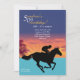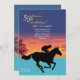 Faites de cet événement une occasion spéciale en invitant les invités à cette invitation unique. Le magnifique arrière - plan est doté d'une silhouette de cheval et de jockey qui traverse la carte.La carte est facile à customiser avec votre libellé, police, couleur de police et choix de six types de papier.