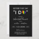 Invitation charmante au dîner de répétition de mariage LGBT avec un cœur de fierté arc-en-ciel avant de dire oui sur un fond noir.