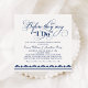 Une invitation à la douche pour couples de mariage, formelle et élégante, comporte un titre de script de calligraphie magnifique : "Avant qu'ils disent que je le fais" avec un texte personnalisé pour votre événement et un détail de bordure strié damassé. Design carré. Couleurs bleu marine et blanc.