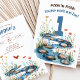 Célébrez la première année de votre petit avec notre invitation à l'anniversaire de Babbling Brook, où la sérénité de la nature rencontre la joie de la croissance. Cette carte magnifiquement illustrée présente un ruisseau qui serpente à travers une scène sereine de fleurs et de faune, où des pierres d'aquarelle et des ruisseaux doux créent un chiffre "1" au milieu d'une tapisserie de fleurs de marigold, de corail et de cerulean. Les papillons qui jaillissent dans les tons persimmon et cobalt ajoutent une touche dynamique au paysage paisible. Au contraire, les détails de la fête émergent au-dessus de l'eau tranquille sur fond de nuages blancs, détaillés de teintes de sienne et de bleu ciel, invitant les invités à prendre part à la célébration des étapes simples mais profondes de la vie.