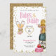 Bébés et Bubbly Galentine's Day Invitation avec bouteille de champagne, flûtes de champagne, fausse parties scintillant or et macaron rose.