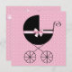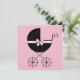 Adorable pois rose avec élégant chariot de bébé noir enveloppé dans un arc rose doux. Elégante et rose pois douce invitation à la douche bébé fille. Ajoutez vos détails à l'avant et/ou à l'arrière en ajoutant les détails de l'événement, le style de police, la taille et la couleur de la police et le libellé.
