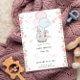"Préparez-vous à accueillir notre petit avec un coffre plein de joie ! Joignez-vous à nous pour un baby shower à thème d'éléphant, aux accents roses et bleus et à de délicieuses décorations en ballon. Ça va être parfait pour le pachyderme !" vous pouvez customiser cette invitation en ajoutant vos propres détails de baby shower.
