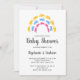 Cette Invitation de Baby shower unique est décorée d'un arc-en-ciel coloré fait de petits pieds de bébé en jaune, bleu et rose. Facile à personnaliser. Pour modifier davantage, utilisez l'outil de conception pour modifier la police, la taille de police ou la couleur. Parce que nous créons notre oeuvre, vous ne trouverez pas cette image exacte d'autres designers. Aquarelle originale © Michele Davies.