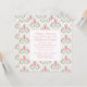 Design Art nouveau vintage avec tulipes roses, vignes et accents de coeurs roses, motif continue sur le dos de la carte. C'est un style élégant pour votre thème de baby shower rétro.