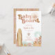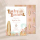 Bébé à bord, invitation baby shower est l'invitation parfaite baby shower pour votre baby shower à thème surf. La planche de surf en bois de couleur terre, les coquillages et les palmiers en beige et marron sont parfaits pour un baby shower neutre pour les deux sexes.