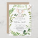 Invitation votre invité avec notre invitation à baby shower d'ours bébé élégant et moderne comprend des gares d'eucalyptus vertes et animaux de safari aquarelle. Personnalisez avec vos détails de baby shower dans une mise en page simple et élégante police de style manuscrite.