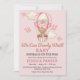Belle illustration d'un bébé ours dans un ballon rose avec des nuages et des oiseaux. L'arrière - plan est rose pâle