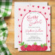 L'invitation au baby shower à thème fraise de cette fille est décorée de fraises d'aquarelle rouge et d'un design élégant en arc sur un arrière - plan rose doux. Il dit Berry Sweet dans la typographie de script élégante. Facile à personnaliser. Aquarelle originale © Michele Davies.