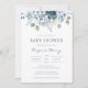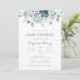 Elégante aquarelle Floral Dusty Baby shower bleu Invitation. Ce faire-part de mariage moderne présente de belles aquarelles peintes à la main bleu marine, bleu poussiéreux et des roses crème avec des feuilles verts sauge. Les articles correspondants sont dans la collection de Mariages Floraux Bleus Dusty.