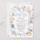 Cette conception présente une aquarelle illustrant des pêches pâles et des fleurs bleues. Le texte "Baby Boy" est écrit dans une police Script.