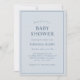 Préparez-vous à accueillir votre petit dans le monde avec cette Invitation Simple Baby shower Bleu qui présente du texte bleu marine sur un arrière - plan bleu clair et poussiéreux, parfait pour donner le ton d'une célébration sophistiquée!