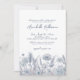 Elégante Dusty Blue Pampas Boho Baby shower Invitation. Célébrez la mère d'être avec ce design inspiré de la nature, parfait pour des thèmes comme "Baby in Bloom" ou "Un petit Fleur sauvage est sur le chemin." Vous pouvez même ajouter une de ces phrases en haut de l'invitation à tout mettre en cravate ensemble et donner le ton à l'événement. L'arrière - plan blanc immaculé fournit une base propre et intemporelle, tandis que les polices bleues poussiéreuses en calligraphie manuscrite gracieuse ajoutent une touche de sophistication et de chaleur. Un élément de design rectangulaire souple se trouve derrière le texte, offrant la possibilité d'introduire une pop de couleur ou un accent subtil qui complète votre thème. Au fond, une frise fleurie raffinée met en valeur l'herbe de la pampa, les fleurs bleues douces et la verdure luxuriante, créant une esthétique sereine et naturelle qui complète à merveille la palette de couleurs muettes. Ce design allie une simplicité sophistiquée et le charme de l'extérieur. Parfait pour les baby showers du printemps ou de l'été, cette invitation est idéale pour les fêtes de jardin, les fêtes à thème boho ou les réunions confortables. Entièrement personnalisable, vous pouvez ajuster le texte, les polices et la mise en page en fonction de votre vision et de votre thème uniques. Disponible sous forme d'invitation imprimée ou de fichier numérique téléchargeable, ce design saisit l'élégance naturelle et la beauté boho, donnant le ton parfait pour une célébration mémorable.