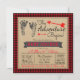 Des invitations à la douche pour bébé de bûcheron avec pieds et flèches sur un papier Kraft et un arrière - plan à plis de bison. Cette aventure Boho commence une invitation baby shower est facilement customisée pour votre événement en ajoutant simplement vos détails.