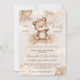 Cette invitation au baby shower boho, mignonne, neutre pour le genre, sur le thème de l'ours en peluche présente un mélange d'accents rustiques vintages dans des couleurs chaudes pastel comme le beige, l'ivoire, le vert et le marron. Un adorable ours en peluche, des nuages, de l'herbe pampa, des feuilles de palmiers et des fleurs créent une atmosphère cosy et accueillante. N'oubliez pas d'explorer la collection complète !