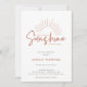 Un petit rayon de soleil est en route !, invitation Baby shower. Modèle de style design typographique chic avec coordination motif orange rustique support.