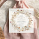 Invitation vos amis et ceux qui aiment pour célébrer votre baby shower de fin d'été/d'automne avec cette magnifique invitation à la floraison d'automne rustique. Ce design présente de minuscules floraisons automnales dans une élégante couronne - parfait pour un baby shower harmonieux, féminin, mais neutre pour le genre en l'honneur de la future maman.