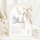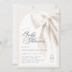 Invitation Baby shower de Bow Beige. Cette élégante invitation comporte un arc blanc crème et un script manuscrit romantique, parfait pour un baby shower fantaisiste. Le ruban chic et le design preppy ajoutent une touche de sophistication, tandis que le modèle modifiable permet une personnalisation facile. Créez une invitation magnifique et mémorable pour votre événement spécial.