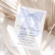 Célébrez l'arrivée prochaine d'un bébé avec cette invitation à Baby shower Blue Bow! Avec son arc magnifiquement illustré, ses teintes pastel douces et sa typographie élégante, ce design intemporel donne le ton parfait pour une célébration sophistiquée et mémorable. Personnalisez-le avec vos détails d'événement pour une touche unique !