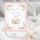 Joli petit lapin lapin lapin aquarelle dans un panier d'osier budget baby shower invitation carte postale entouré de jolies fleurs pastel. Sa petite couverture rose est drapée sur le côté de ce panier sucré. Si mignon pour cet invitation de douche pour petite fille. 100% de satisfaction client avec "Zazzle"