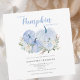 Petite invitation au baby shower citrouille bleu. Facile à modifier le texte. Jolie aquarelle citrouille florale pour douche bébé garçon.
