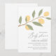 Invitations amis et famille pour fêter un petit en chemin avec cette invitation au baby shower à thème citron.