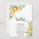 Une petite mignonne est en route ! Invitation tout le monde à la fête baby shower la plus mignonne avec une jolie aquarelle orange cuties invitation modèles. Cette invitation à la douche bébé cuite orange présente de belles oranges aquarelles et des feuilles verts avec fleurs orange blanches sur un design d'invitation de style moderne.
