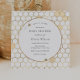 Invitation au baby shower d'or sur le thème des abeilles avec un motif de nid d'abeille en or et des abeilles en effervescence. Personnalisez avec vos informations ou cliquez sur "Cliquez pour customiser plus loin" pour modifier les styles, la taille et les couleurs des polices.
