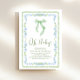 Charmant et mignon invitation de baby shower neutre genre avec cadres d'aquarelle verte et bleue d'inspiration vintage, une aquarelle coquette verte, "Oh Baby" présenté dans un script chic, et le nom de la future mère et les détails de douche dans la typographie serif classique.