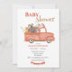 Doux petit aquarelle bois animaux de forêt dans un camion vintage. Les rouges et les bruns rendent cet invitation simple parfait pour la célébration de votre bébé garçon. 100% de satisfaction client avec "Zazzle"