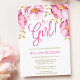Invitations élégantes de douches pour bébé rose et or. Le design présente des fleurs d'aquarelle rose, des feuilles de parties scintillant faux or et une police de caractères de script moderne. Les dessins sont des illustrations/graphiques à papier plat - PAS VRAIMENT OR.