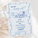 Une invitation au baby shower bleu poussiéreux griffé à la main, à la mode, suivant la dernière tendance en baby shower stationnaire. Cette invitation fantaisiste et décalée présente le thème du baby shower "We can bearly" dans une perspective branchée. Invitation parfait pour des baby showers modernes branchés pour des célébrations sans distinction de genre.