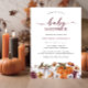 Invitation Baby shower d'automne. Célébrez les festivités d'automne avec des citrouilles d'aquarelle peints à la main, des fleurs d'automne bordeaux et en terre cuite, des botaniques vert et rouille de la forêt, et des scripts de calligraphie manuscrits bordeaux. Laissez-nous vous aider à rendre votre baby shower spécial avec cette belle invitation.