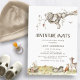 (Aventure Attente) Invitation Baby shower Aventure. Avec de mignons animaux de bois aquarelés peints à la main, cette invitation est un choix idéal pour votre baby shower à thème forestier. Dans une forêt d'arbres, il présente des oeuvres d'art magnifiquement fantaisistes avec ours sauvages, renards et cerfs. Trouvez les articles correspondants dans la collection de Baby showers Woodland Moderne.