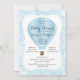 Blue Hot Air Balloon Flying in the Clouds Boy Baby shower Custom Invitation.