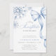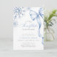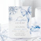 Célébrez votre baby shower d'hiver avec cette élégante invitation aux flocons de neige. Doté d'un arc bleu délicat, de flocons de neige gelés et d'un script gracieux, ce design est parfait pour annoncer "Un petit flocon de neige est sur le chemin." Un choix intemporel pour un baby shower garçon ou toute célébration hivernale.